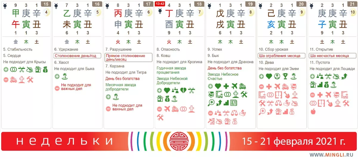 17 февраля, среда. День без богатства + столкновение. А это значит, что финансами сегодня лучше не заниматься. Обезьяны, Тигры и обладатели парочки Тигр-Обезьяна в карте ведут себя смирно по возможности, не активничайте!