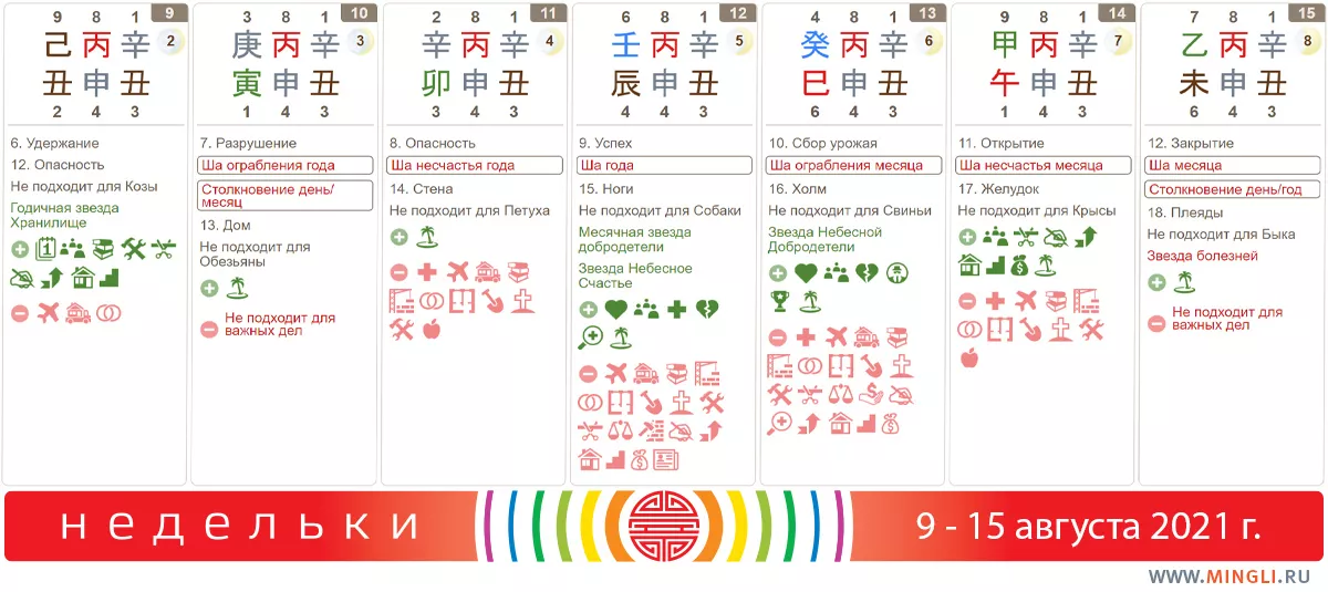 10 августа, вторник. День-пауза. Точно не стоит подписывать финансовые договора, принимать решения об оплате крупных сумм, отправляться в длительную поездку. Особенно, если вы Тигр, Обезьяна или же у вас в карте бацзы есть эта парочка. Однако, сегодня и завтра люди Металла смогут неожиданно заработать.