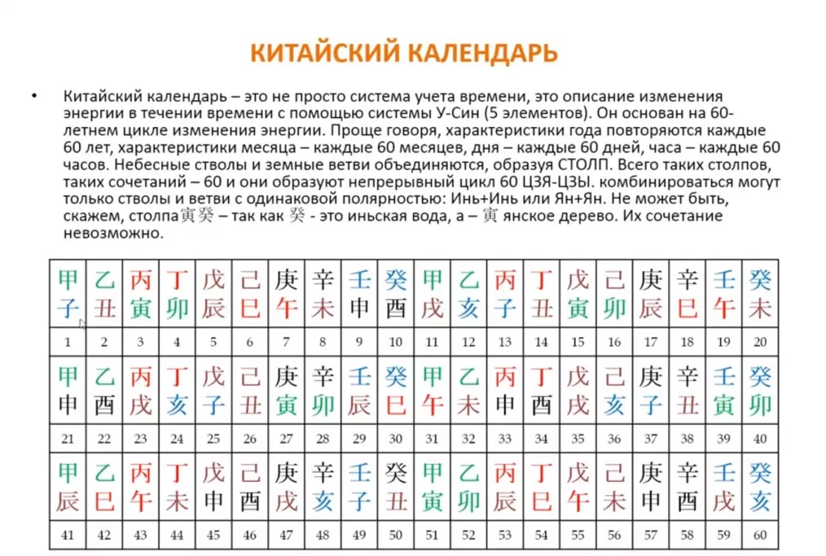 - устройстве китайского календаря
