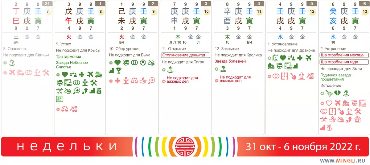 2 ноября, среда. Также хороший день, особенно для начала учебы, подписания контрактов и сбора долгов. Не выбирайте его для начала лечения и взятия кредита. Снова в приоритете те, кому Почва полезна по Бацзы. А вот Быкам день для важных дел не подойдет.