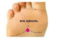 - Добавим точку на меридиане Почек на подошве ноги-юн-цюань. Она поможет устранить последствия стрессов, которые так сказались на состоянии волос.