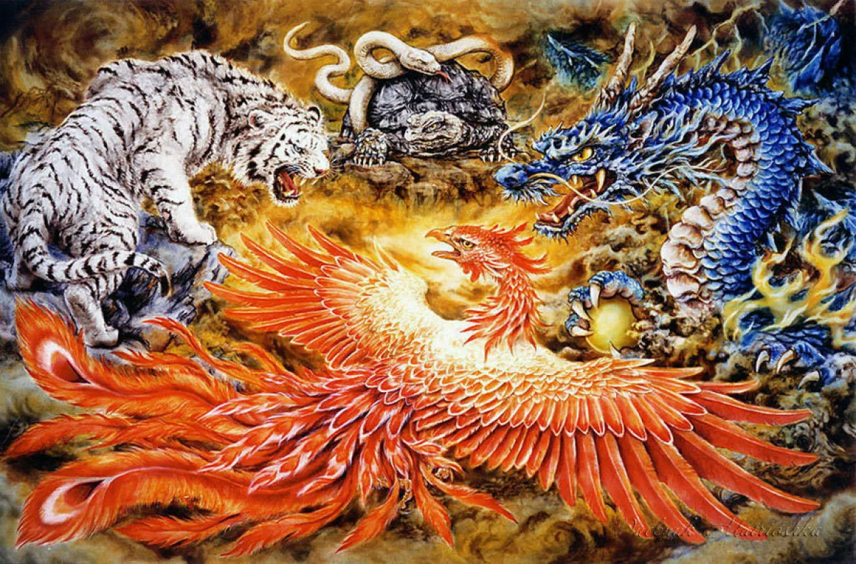 Наверняка, если вы интересовались Фэн Шуй, вам приходилось слышать о Драконе, Тигре, Черепахе и Фениксе – четырех «волшебных» животных-защитниках. Конечно, речь не идет о настоящих зверях» – это названия гор или холмов ландшафта, окружающего захоронение или деревню в древнем Китае. По форме и размеру ближайших гор судили о перспективах места, о том, насколько оно поддерживает потомков по мужской или женской линии, о поддержке и защите.