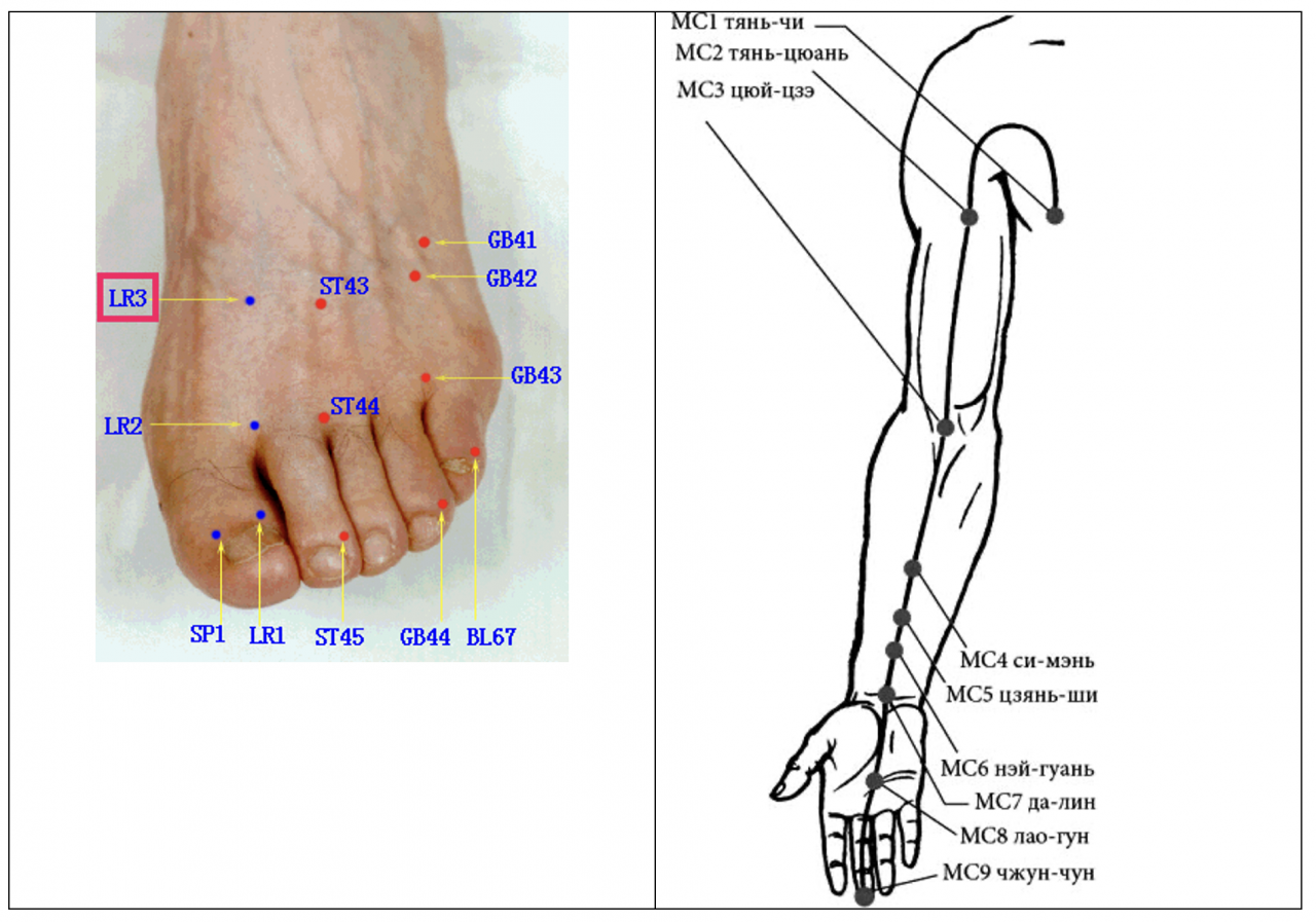- В лечении поможет успокаивающий массаж точки LR-3 на меридиане Печени и точки МС-6 Нэй- гуань на меридиане Перикарда. Массировать по 2 минуты – сначала на правой стороне тела, по часовой стрелке, затем на левой стороне тела, против часовой стрелки.