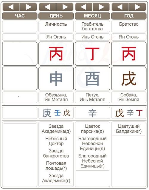 Без часа – это жалко, конечно, но есть как есть. Видим, что внизу у нас сезон Металла. Видим, что сверху Огонь. Вариантов всего два: или слабая карта или визави (карта с двумя элементами). Проверила. Действительно, Огонь и Металл – хороши. Да и Дерево, поддерживающее Огонь, тоже норм. Но это все по полезности элементов. Такты поддерживают Огонь в большинстве своем, но на Металлических годах тоже много плюсов. Вопрос о типе карты остался открытым.
