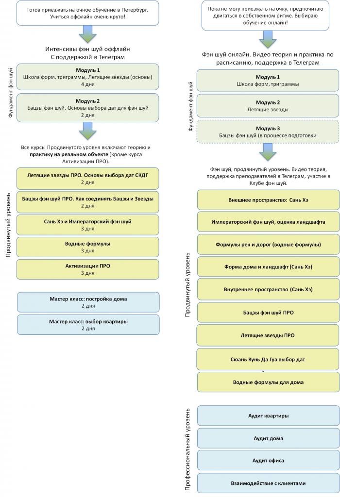 Ниже на схеме вы можете увидеть, как выглядит содержание программ обучения Фэн Шуй в нашей школе. Если что–то интересно/не ясно/не понятно/хочется узнать – задавайте вопросы под этим постом.