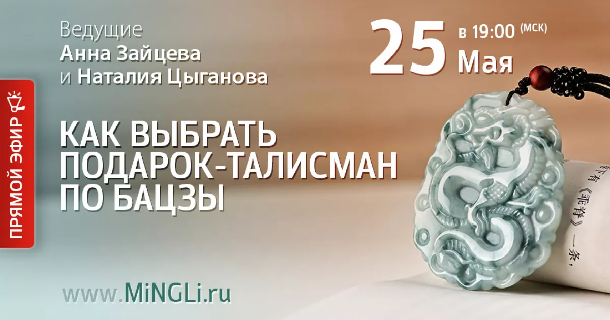 Приглашаем вас 25 Мая в 19:00 на открытый вебинар «Как выбрать подарок-талисман по Бацзы»