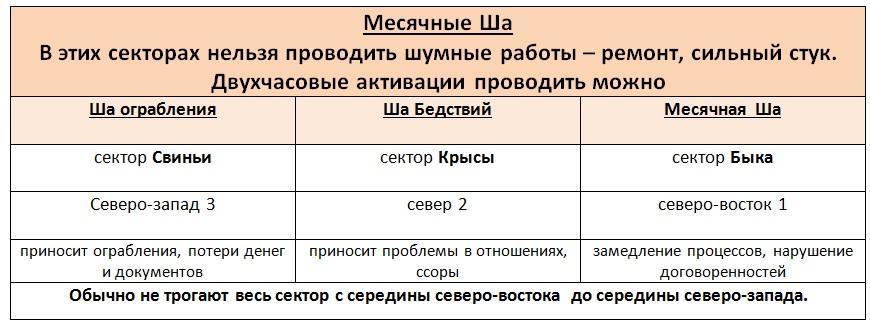 В этом месяце происходит «дублирование» годовых и месячных звезд, благопритяные энергии удваиваются и приобретаю большую силу, очень хорошие сектора в этом месяце север, юго-запад и юг, используйте эти сектора для достижения своих целей. Если у вас хороший сектор отсутствует или в санузле, вам помогут активации и прогулки по технике Ци Мэнь.