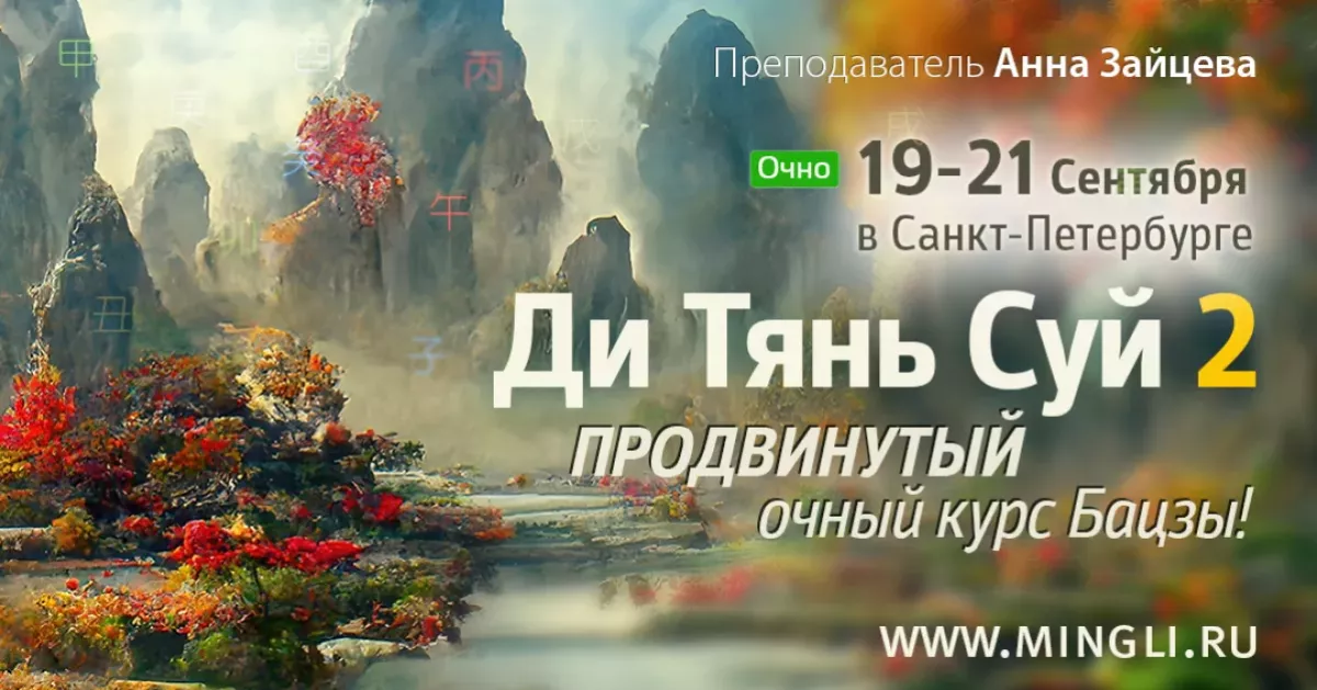 Для тех, кто уже проходил курс «Ди Тянь Суй-2» и хочет послушать третий день, мы предлагаем особые условия: за подробностями обращайтесь, пожалуйста, к организатору курса Елене через форму обратной связи 👉 https://www.mingli.ru/feedback внизу на сайте.