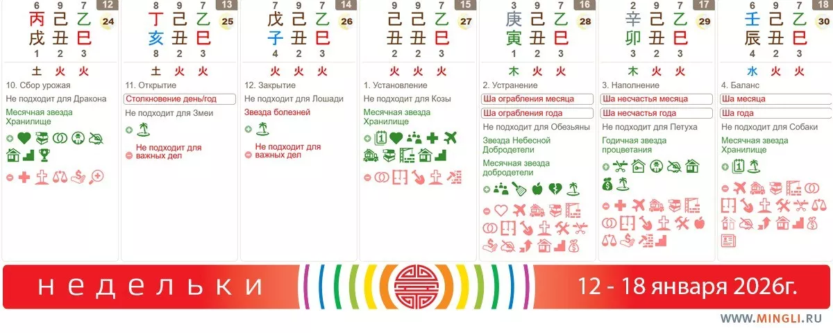 12 января, понедельник. День неплохой, хотя и не сильный. Он подойдет для начала учебы или работы, встреч, подписания контрактов, возврата долгов, пополнения запасов или покупки нужных вещей. Ша находится в центральном дворце, поэтому начинать ремонт дома - не лучшая идея. Также не стоит начинать лечение, проходить диагностику или искать врача. Конечно, если ситуация критическая, ждать не надо! Я говорю о плановых вещах. Янским Огням и Деревьям стоит поберечь здоровье. Драконам лучше переждать с крутыми задумками, реализовывать их сегодня не нужно.