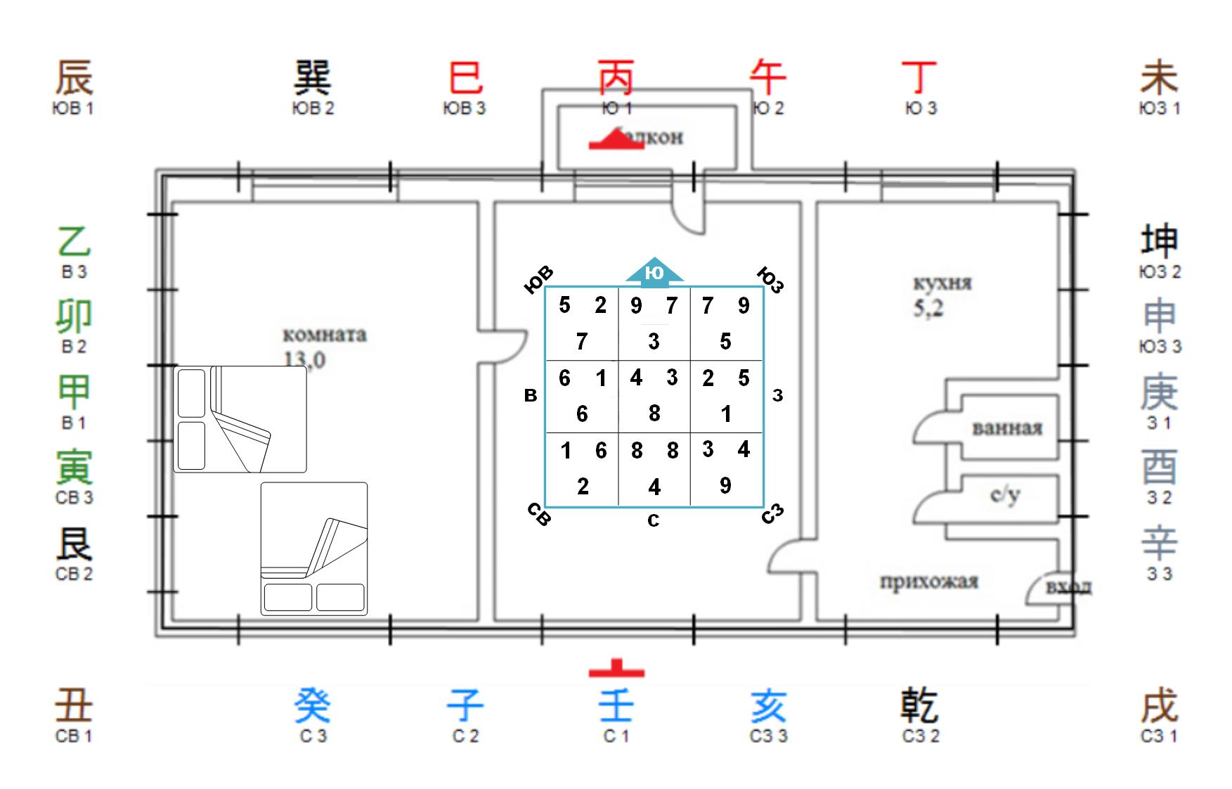 Например, здесь: человеку, которому полезны вода и дерево, повезло). В полезных для него горах есть комбинации 61 и 88. Но кровать, стоящая на 61 с ног получает пять, вторая комбинация кровати 65. Это не очень хорошо. Кровать на 88 направлена ногами в 7, не самый лучший вариант, но возможный. Здесь мы не смотрим, что 8 – земля, а земля человеку неблагоприятна по бацзы. Это не важно! Не забывайте проверить гуа и горную звезду кровати, чтобы не было контроля. По звездам место получше найти можно, можете попробовать сделать это сами.)