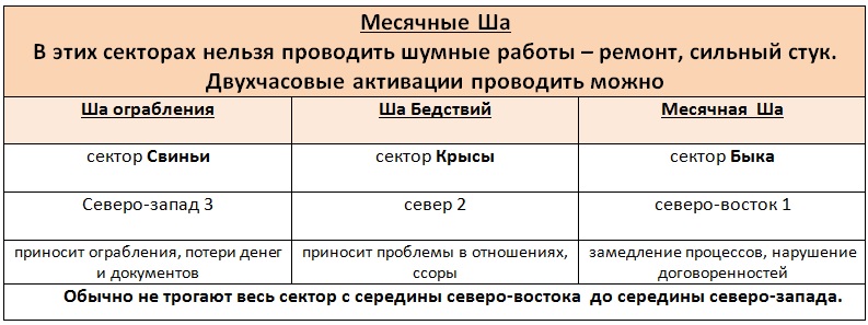 Юг. В этом секторе гостит месячная «пятерка». Уберите отсюда все активные предметы, предметы красного цвета. Если это активная часть квартиры – поставьте «соляное средство» или повесьте колокольчик на дверь. Не делать ремонт в этом секторе! Постарайтесь находиться как можно меньше в этом секторе, обязательно займитесь здоровьем, если у вас там спальня. В этом месяце повышается опасность вирусных, инфекционных заболеваний, поэтому принимайте меры профилактики, если Юг у вас активен. Если здесь спит женщина, ей очень рекомендуется сходить к маммологу. Не начинайте никакие важные проекты, не давайте деньги в долг, не берите большие кредиты, если у вас здесь входная дверь.