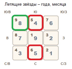 Северо-запад. К благоприятной звезде «единице», прилетит месячная звезда болезней «двойка» и образуется не лучшая комбинация. Возможны проблемы с желудочно-кишечным трактом, обострение гастрита, заболеваний мочеполовой системы. Если у вас есть предрасположенность к этим заболеваниям, старайтесь здесь проводить меньше времени. Месяц имеет тенденцию к образованию камней в почках, поэтому если есть такая предрасположенность – сходите на обследование.