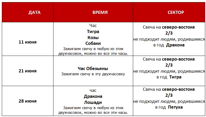 В указанное время и в указанном секторе нужно зажечь свечу. Я беру толстые свечи, которые горят много часов – они устойчивые и не сильно оплавляются. Свеча должна гореть 1,5 часа, но можно оставить и до конца суток (это эффективнее).