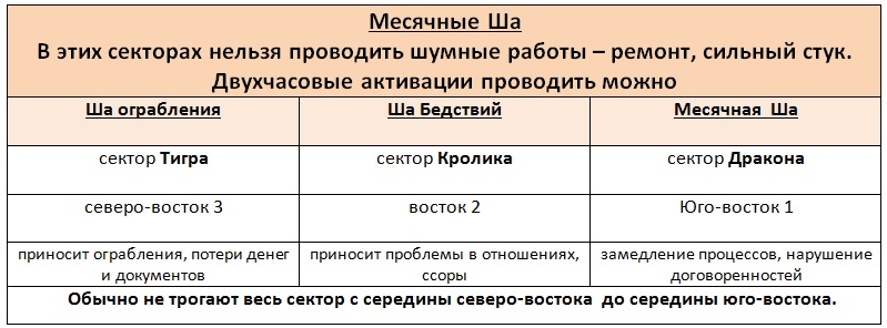 Северо-восток. «Единица» месяца усиливает «нефритовую тройку», что может способствовать довольно агрессивному поведению, спорам, болезням печени и головокружениям. Но в целом, сектор неплохой, если использовать его потенциал в свою пользу. Для тех, кто проводит здесь много времени, важно контролировать свои эмоции. Поэтому достигайте свои цели без перенапряжения, умея вовремя остановиться, оценить обстановку. Помните, что здесь располагается три Ша года и месяца, старайтесь не нарушать целостность стен ремонтом.