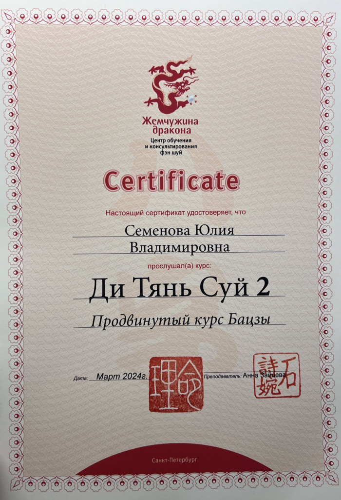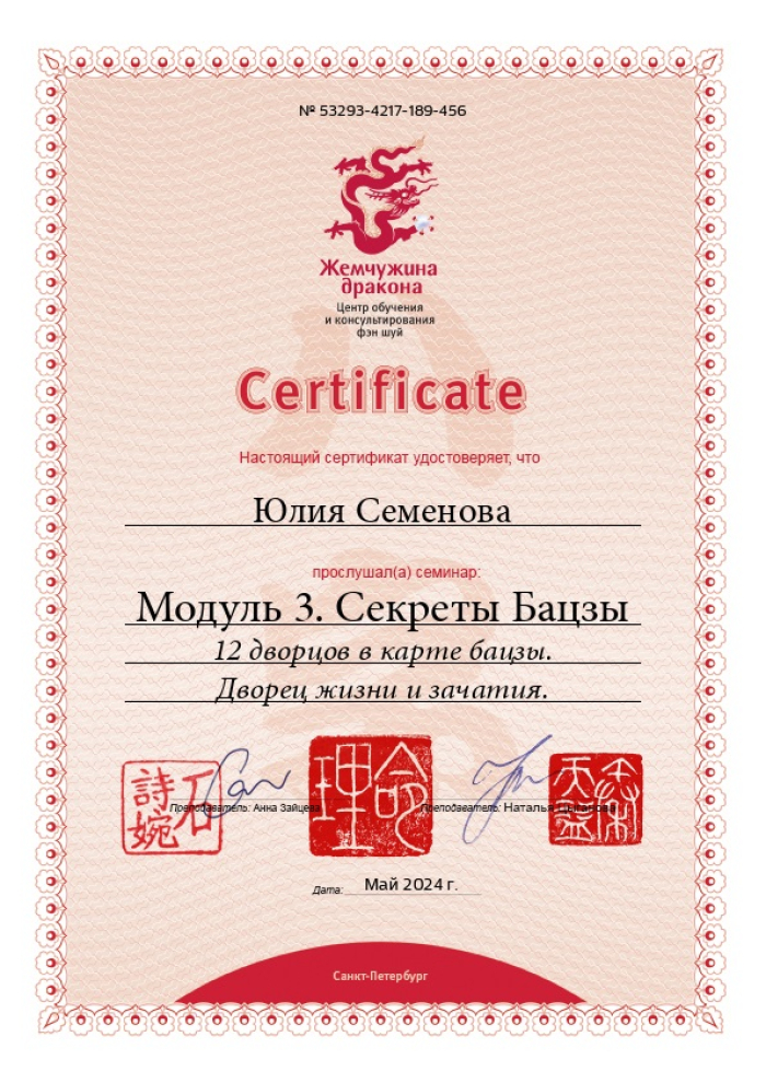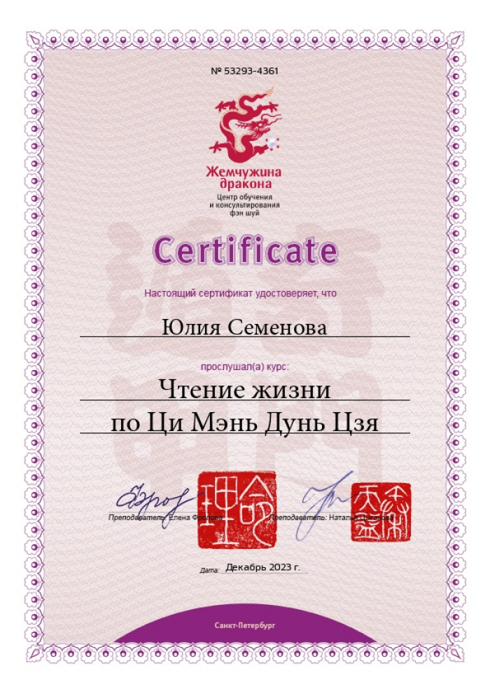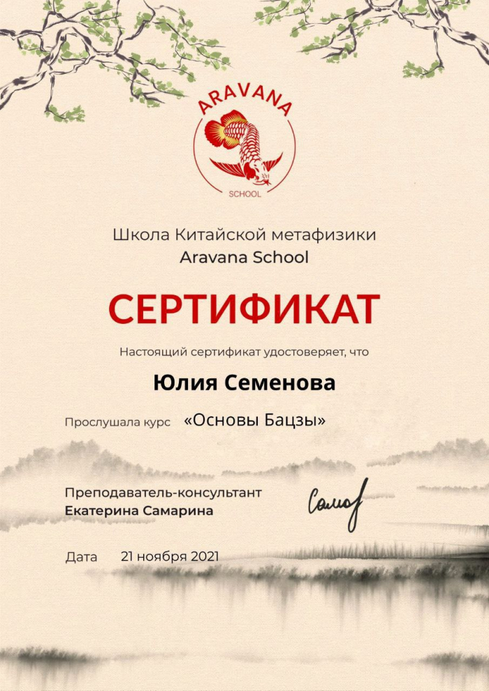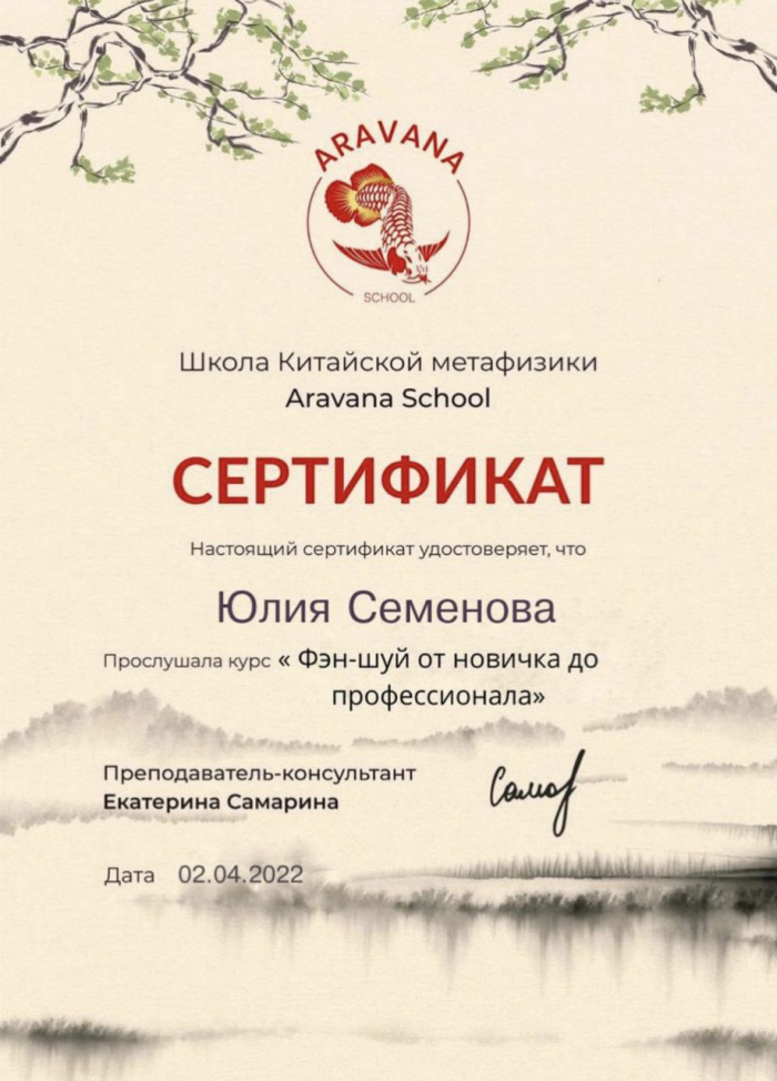 Будучи бухгалтером всю свою сознательную жизнь, построив хорошую карьеру, благодаря моим учителям в мир китайского искусства, я утвердилась в своем намерении ступить на новый путь, тот самый, что все время меня затягивал с самого детства в моем подсознании, правда тогда я этого не понимала. И сейчас я очень хочу помогать тем, кто запутался, как однажды я, и кто хочет изменить свою жизнь в лучшую сторону, открыв истинного себя.