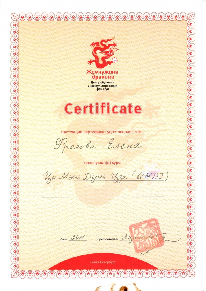 Начиная с 2009 года много и настойчиво училась у отечественных Мастеров китайской метафизики.