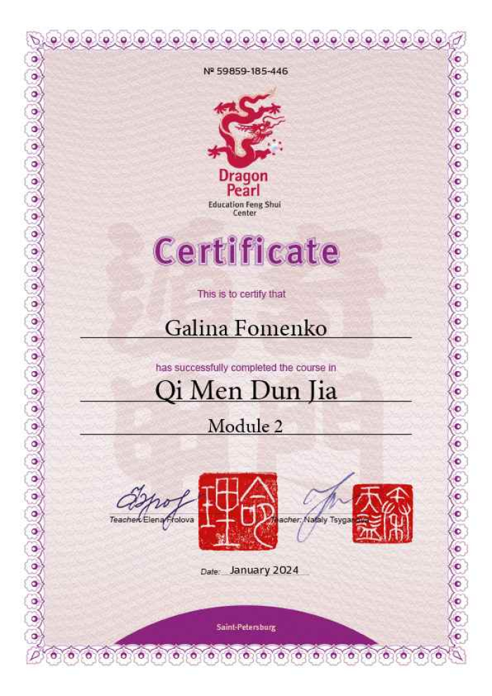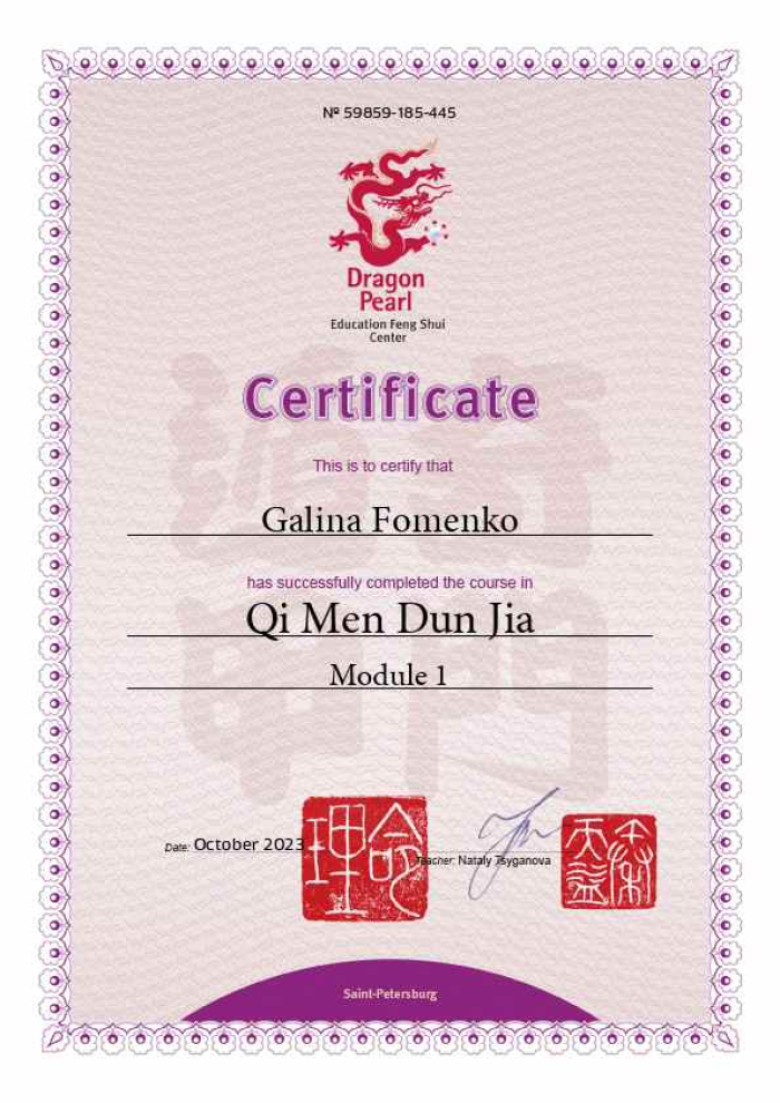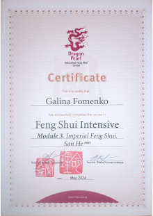 Меня зовут Галина. Являюсь сертифицированным консультантом по специализации «Фэн шуй» центра обучения и консультирования "Жемчужина дракона".